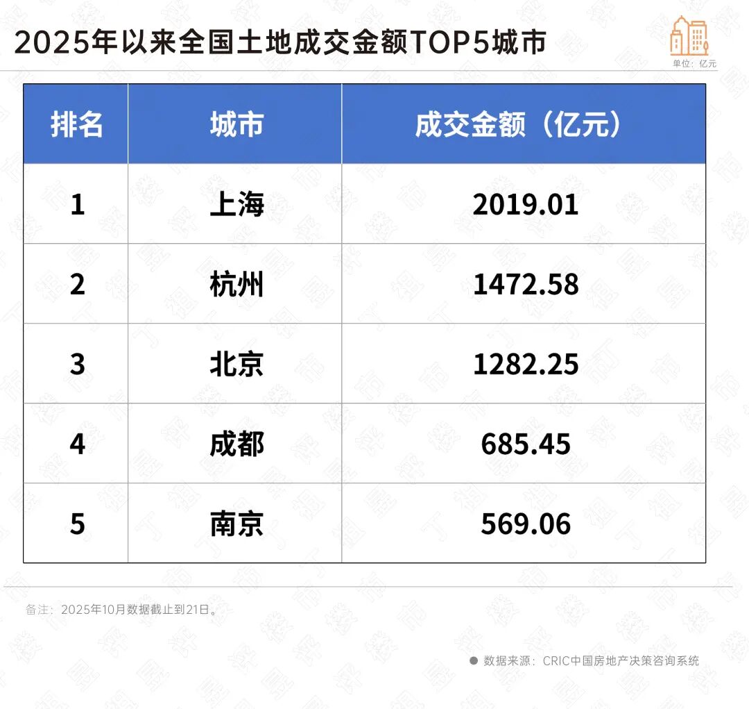 上海八批次土地出让总金额累计达到1233.37亿元,若算上协议出让地块,截止10月21日,年内上海土地出让金额已达到了2019.01亿元,排在全国首位。