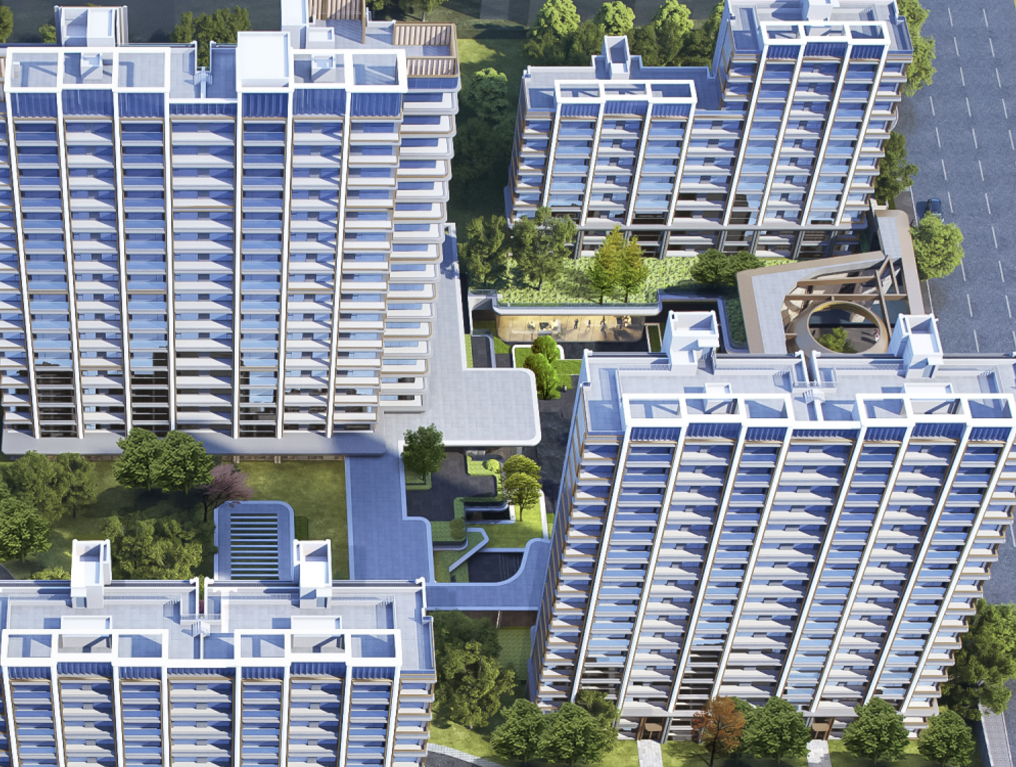 而093地块则采用了大量的蓝灰色调,风格更硬朗一些。