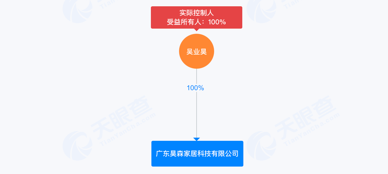 公开资料显示,昊森家居成立于2025年11月19日,公司位于广东省佛山市,主要从事批发业,注册资本500万元。该公司由自然人吴业昊100%控股。值得注意的是,据天眼查,与吴业昊相关联的,也仅有昊森家居一家企业。