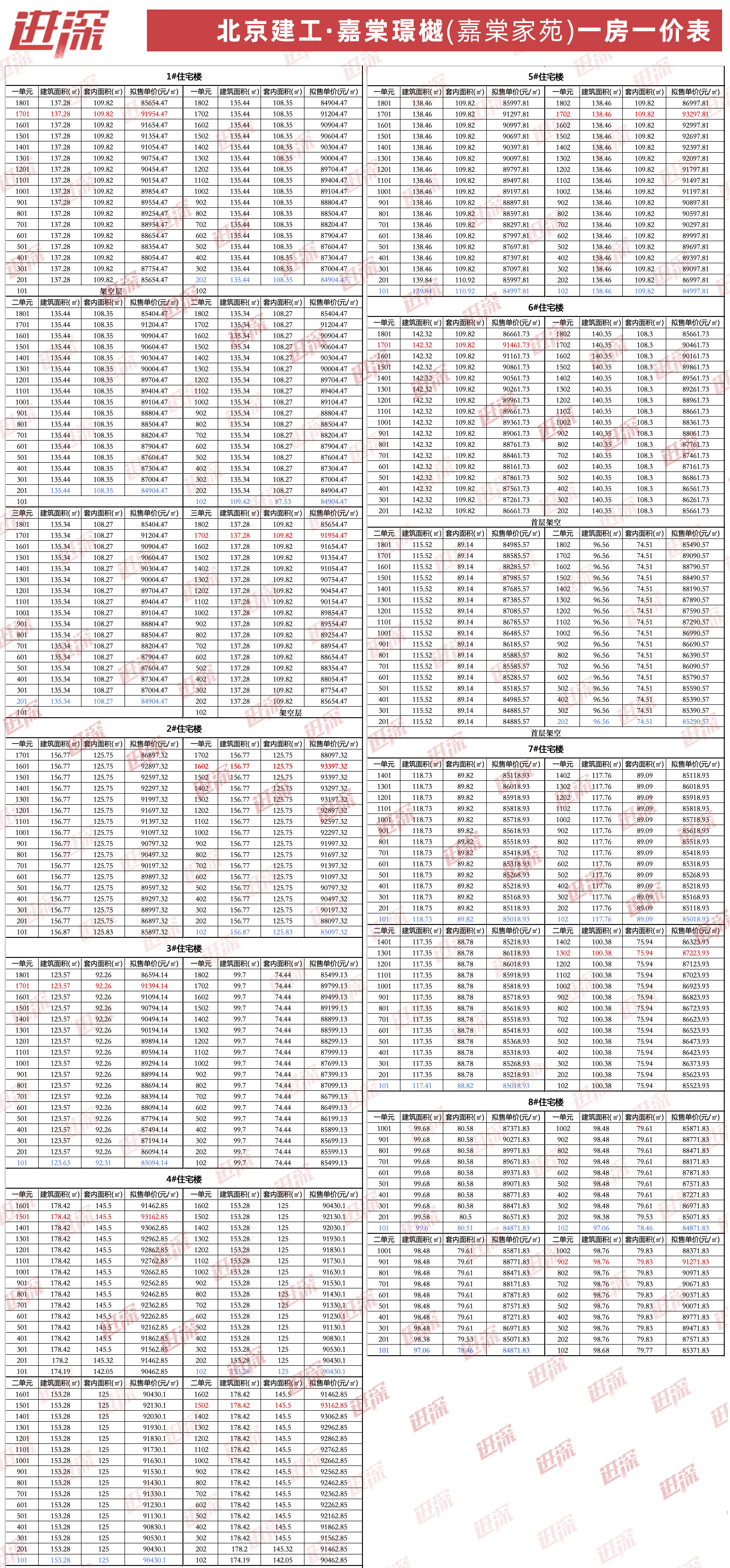 1号楼18层,首层局部架空,三个单元共103套,建面约137㎡(边户)/135㎡(中间户),均价8.49万元-9.2万元/㎡;