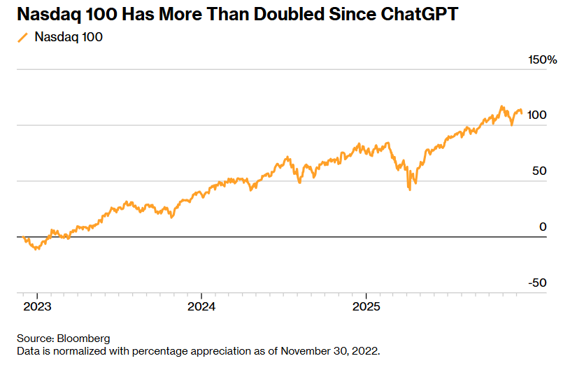 距离OpenAI发布风靡全球的ChatGPT引发全球人工智能投资狂热以及全球企业布局AI的超级热潮,已经过去三年有余。虽然仍有资金涌向英伟达、博通以及谷歌、甲骨文、美光等等受益于AI投资狂热的AI算力产业链领军者们,但是市场对于这波股票市场AI繁荣能否持续的疑虑也在加深,一些投资者认为这轮AI投资热潮的“最好时光”已经结束。