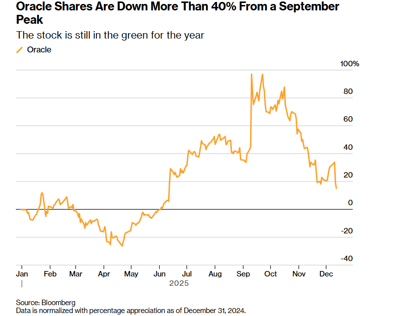 上图显示,甲骨文股价较9月高点已下跌超过40%——但该股年内仍为正向投资收益。