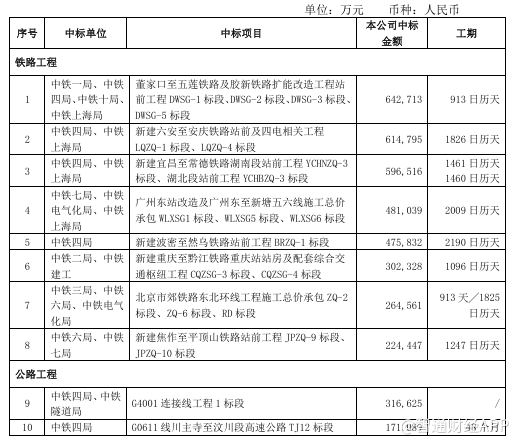 (00390)发布公告,近期,本公司中标以下重大工程: