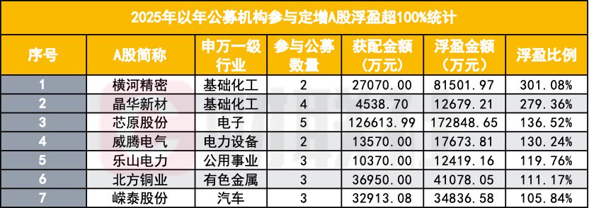 值得注意的是,这些超高收益并未集中在传统的热门板块,反而出现在相对冷门的细分领域,体现出部分基金公司在定增中采取了逆向配置的思路。