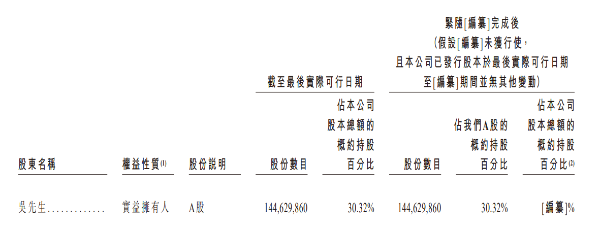截至最后实际可行日期,拓斯达的执行董事、董事会主席兼总裁吴丰礼先生,透过其直接持有的144,629,860股A股,有权于公司行使约30.61%的投票权(不包括公司作为库存股份持有的4,471,668股A股)。于[编纂]完成后,吴先生将构成本公司的单一最大股东,而根据上市规则的定义,该公司将无任何控股股东。