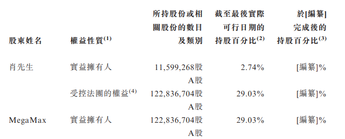 (i)截至最后实际可行日期,创始人兼董事会主席肖俊承先生直接持有11,599,268股A股,占公司股东会表决权约2.8%(不包括截至最后实际可行日期公司所持有的3,079,900股库存A股);及(ii)MegaMax直接持有122,836,704股A股,占公司股东会表决权约29.2%(不包括截至最后实际可行日期公司所持有的3,079,900股库存A股)。