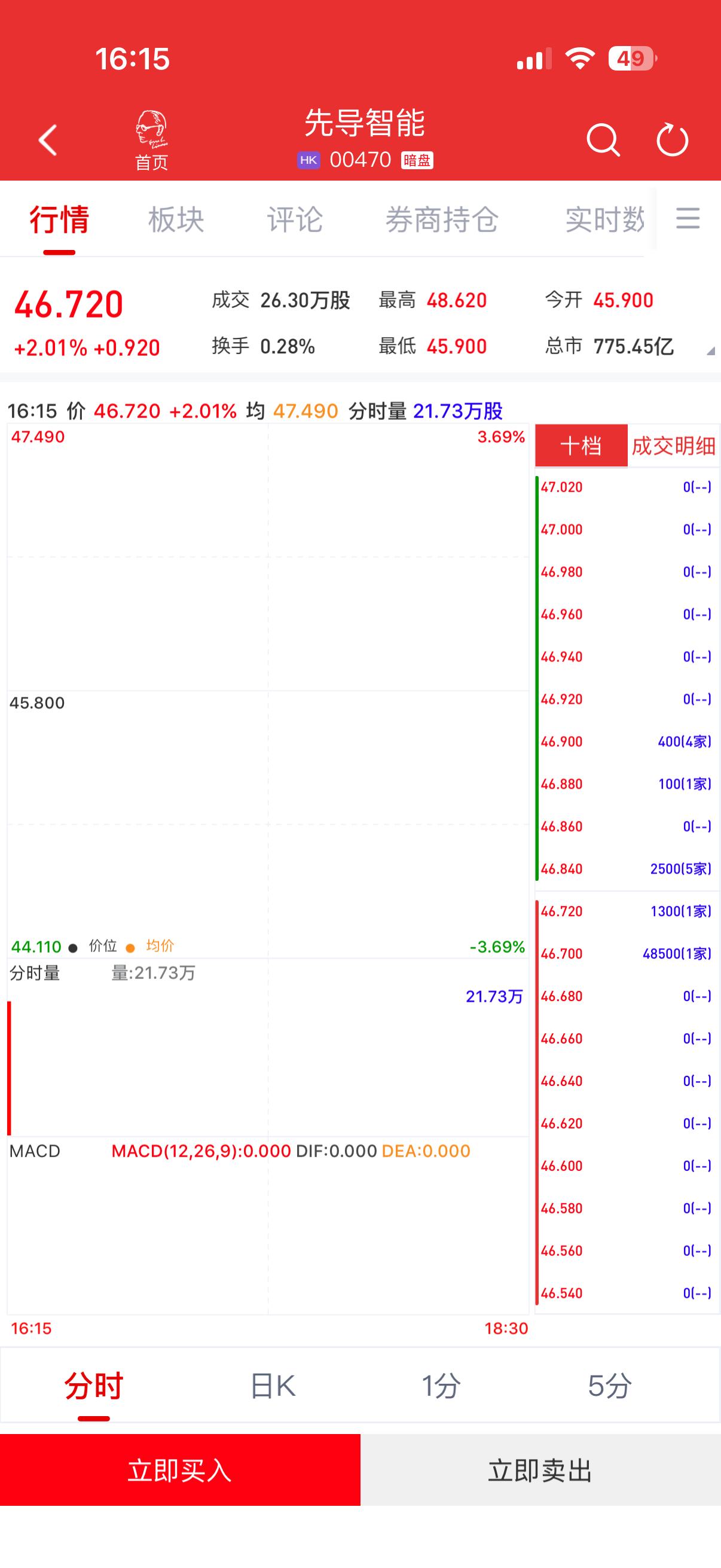 先导智能(300450.SZ)将于2月11日(星期三)在香港挂牌。截至发稿,利弗莫尔证券暗盘交易显示报价46.72港元,较招股价45.8港元上涨2.01%,每手100股,不计手续费,每手赚92港元。