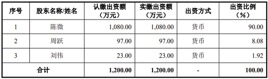 2010年7月,公司将注册资本增至1200万元,陈微持股比例仍为90%、周跃持股比例上升至8.08%、刘伟持股比例下降至1.92%。