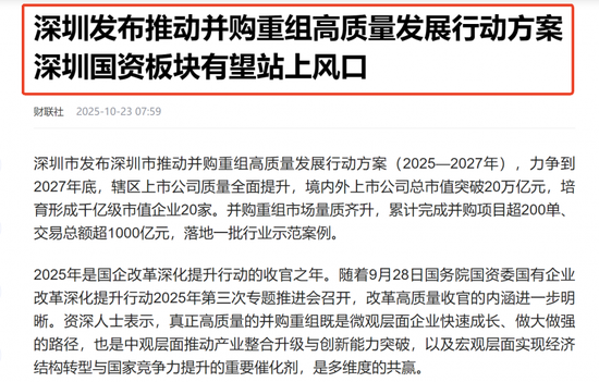 深圳市发布深圳市推动并购重组高质量发展行动方案(2025—2027年)(以下简称《行动方案》)。《行动方案》制定了十项重点任务,进一步发挥并购重组资源配置功能,支持深圳上市公司注入优质资产、提升投资价值,助力深圳以先进制造业为主体的“20+8”战略性新兴产业集群和未来产业发展壮大,构建现代化产业体系竞争新优势。