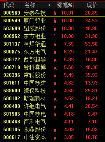 可控核聚变概念股反复活跃,东方钽业3天2板,安泰科技等多股涨停。