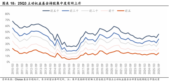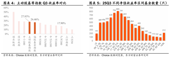 【业绩】:25Q3主动股基指数跑赢沪深300近10个百分点,定价权继续回归。业绩分布明显右偏,有10%的基金净值收益率超过46%,赔率具备吸引力。