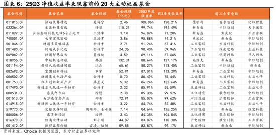 25Q3净值收益率表现靠前的“明星”主动权益基金配置高度集中在AI产业链(AI算力)方向。
