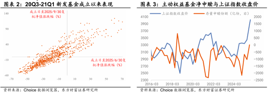 【份额】:25Q3主动权益基金总份额环比下滑幅度扩大,“回本后赎回”或是主要原因,20Q3-21Q1高峰新发基金仍有63%左右份额未回本,后续或仍面临一定回本赎回压力。
