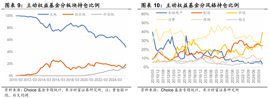 板块:重仓股口径,双创进一步上升。25Q3主动权益基金创业板/科创板持仓比例环比分别提升3.93/1.79pct至19.08%/14.00%。