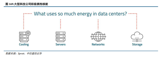 AI热潮下电力需求激增,大型科技公司积极拥抱核能:人工智能时代到来,数据中心承载海量算力,其电力消耗增长已成必然趋势。小型模块化反应堆(SMR)具有全天候、稳定发电以及部署灵活的优势,契合数据中心的用电、用地需求,西方科技巨头对于“AI+核电”的合作模式已基本达成共识,正加速推动小堆的部署和技术创新。根据Sprott,预计2023年至2030年,数据中心的电力需求将激增258%,使其在全球电力消耗中所占份额从1.2%上升至4.1%。