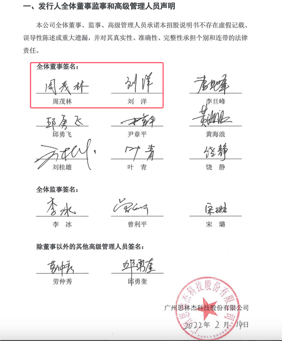 7 、作为董事长和高管,周茂林和刘洋在 IPO 说明书和多个文件中都签字画押,表示,“除发行人员工持股平台历史上曾涉及股权代持情况外,发行人直接或间接股东不存在其他股份代持等情形”。“公司全体董事、监事、高级管理人员承诺本招股说明书不存在虚假记载、 误导性陈述或重大遗漏,并对其真实性、准确性、完整性承担个别和连带的法律责任。”