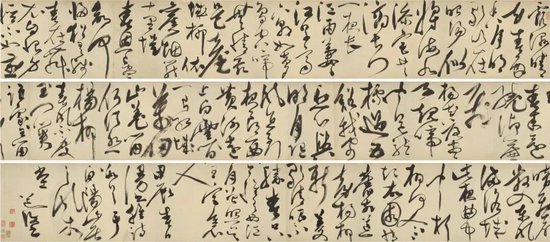 对南京收藏界颇为熟悉的一位艺术界资深人士对澎湃新闻介绍,其实此前陆挺因为出现资金短缺,已将仇英《江南春》图卷在内的8件书画作品,抵押给南京十竹斋以换取数千万元借款,后因陆挺逾期无力支付本金和利息,十竹斋便依照协议,对这8件抵押作品进行自主处置,整体转让给一位宁波买家朱光。该宁波买家朱光将八件书画中的一件明代陈淳《草书唐诗卷》送拍北京保利,并在2023年保利春拍中以3500万元成交,而庞家旧藏《江南春》图卷也正是这位宁波的一位从事书画交易的朱光送拍。