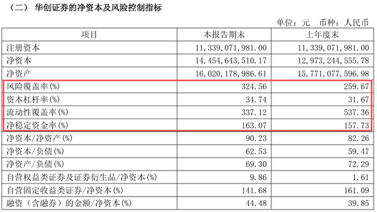 根据华创云信三季报披露数据,2025年三季度末,华创证券的净资本达144.55亿元,较上年末增长11.42%。期末,流动性覆盖率为337.12%,较上年末下降200个百分点,风险覆盖率、资本杠杆率、净稳定资金率则出现不同程度的上涨。