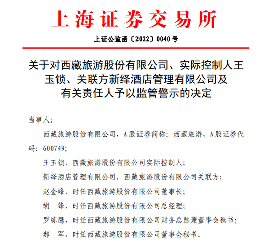 2020年至2021年间,王玉锁实控的另一家上市公司西藏旅游为他控制的关联方“新绎酒店管理有限公司”代付社保及公积金约126万元,被上交所予以监管警示。这些既往的合规问题,都可能成为港交所问询的重点。