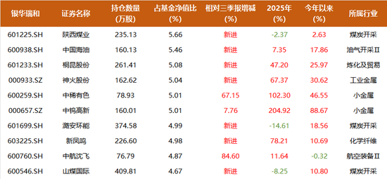 从基金四季报来看,在原本的有色股基础上,新调入了一批煤炭、电解铝公司,或为净值后续的上行拓开了空间。