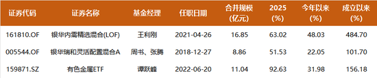 主动型基金中的银华内需精选(161810),银华瑞和(A类:005544、C类:025476),ETF中的有色金属ETF(159871)是其中代表。