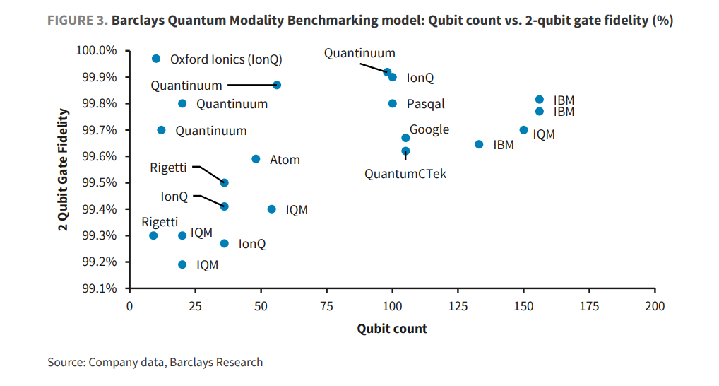 巴克莱通过“量子基准测试模型”,给目前混乱的硬件赛道划了重点: