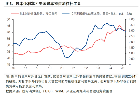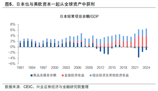 美国战略收缩降低对日本作为杠杆工具的需求。苏联解体后,美国资本的全球扩张与其软实力密切相关,而软实力又依赖于美元的中心货币地位及美军事实力等硬实力的支撑。然而,正如我们在报告兴业证券王涵 | 燎原·重估——特朗普的“空城计”中所指出的,美国硬实力下降已成为现实,并已开始削弱其软实力。尽管近期美国试图通过强制性收购与军事威慑等方式对外获取资产,但这难以掩盖其对外资产扩张速度放缓的事实——从美国对外资产占GDP比重可见一斑。在此背景下,美国借助日本作为杠杆以支持其资本扩张的需求可能正在减弱。