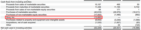 根据年报,英伟达2026财年用于投资活动的现金净额为-522亿美元,而上一财年为-204亿美元。其中,Groq投资活动产生的现金流为-130亿美元(约合人民币-893.0亿元)。
