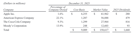 值得注意的是,名单里没有美国银行,而它在2025年末仍是伯克希尔第三大持仓。这种“说什么、不说什么”,同样很阿贝尔:不做过多解释,但边界画得很清楚——集中持有会继续,交易活动会保持克制,只有当长期经济前景发生根本变化,才会“显著调整”。