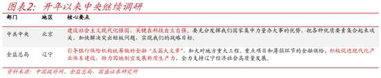 >开年以来中央继续调研,作为“十五五”开局之年,总书记的首次调研选在北京、聚焦科技,强调建设社会主义现代化强国,关键在科技自立自强;此外,金监总局辽宁调研、聚焦金融“五篇大文章”,尤其是积极促进地方现代化产业体系建设、助力因地制宜发展新质生产力。