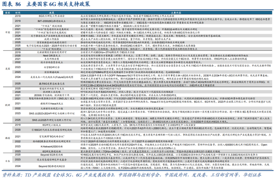 全球6G政策布局快速推进。6G作为下一代移动通信技术,已成为全球主要国家和地区争夺未来科技与经济制高点的关键领域,当前全球主要经济体均推出了国家级政策以推动支持6G研究发展。美国依托其科技巨头和前沿基础研究的优势,以产业联盟Next G为核心,强调技术领先和安全可控,2025年《赢得6G竞赛》总统备忘录明确将6G视为事关国家安全、外交与经济竞争力的关键基础技术,标志其对6G的重视程度进一步提升。欧盟则发挥多国协同和标准化领域的传统优势,以公私合营旗舰项目(SNS JU)整合资源,并设立多个共性技术平台项目支持6G研发。韩国通过两大战略加速6G研发,致力于实现“全球最早实现6G商用,主导全球6G市场”等战略目标,先后出台两批6G专项支撑政策共计4324亿韩元以支持6G发展。日本从B5G向6G逐步推进,通过顶层设计与实施举措构建6G技术优势,并设立专项基金支持6G研发,2020—2024年日本政府在6G领域投资总预算超过1100亿日元。中国对于6G的研发支持处于世界前列,2019年工信部成立IMT-2030(6G)推进组以全部开展6G研发;2021年“十四五”规划纲要提出要“前瞻布局6G网络技术储备”,6G被纳入国家顶层设计;2025年政府工作报告与“十五五”规划建议均将6G纳入未来产业培育体系。此外,在科研成果转化方面,三大运营商通过体系化布局,牵头建设一批6G科学装置及试验平台集群,形成覆盖6G全技术链的研发验证能力,叠加卫星互联网星座建设与空天地一体化网络能力构建全面提速,未来6G商业化有望加速推进。