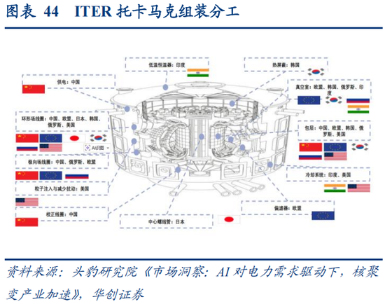 中国:①永鼎股份:核心材料供应商,旗下东部超导深耕第二代高温超导带材,采用了国内独有的IBAD+MOCVD技术路线,其制备的REBCO超导薄膜在磁通钉扎性能上表现优异,技术指标国际领先。②国光电气:ITER项目中偏滤器和包层系统的核心供应商,积极跟进HL-3、BEST等项目。③上海电气:高端装备制造龙头,核电设备“十四五”期间累计综合市占率居行业首位,具备托卡马克全套核心结构件制造能力,已中标CFETR纵场线圈、BEST项目总装等订单。④合锻智能(维权):核心部件制造商,专注聚变堆、真空室等核心部件,深度参与BEST项目。⑤中国核电:中核集团旗下核心上市平台,核电运营龙头,参股中国聚变能源公司,未来聚变电站并网发电的潜在运营方。⑥联创光电:深耕高温超导磁体领域,参与星火一号建设,完成全球首根百米级大电流高温超导集束缆线研制,并中标中核集团超导线圈项目。⑦西部超导:超导材料核心供应商,我国唯一承担ITER项目超导线材生产任务的单位,产品也用于国内CFETR等项目。