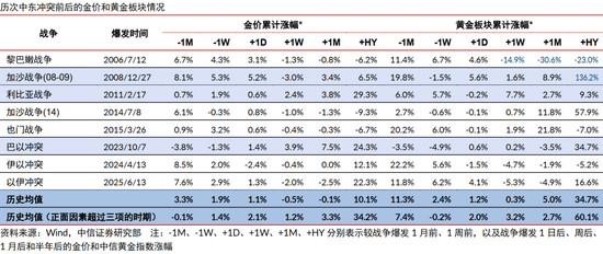 ▍历次中东冲突后半年金价平均涨幅达到10%。