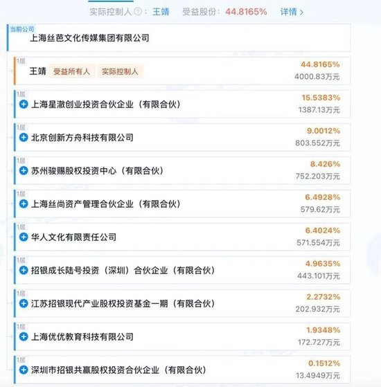 丝芭传媒创始人王靖,复旦大学出身,早年做互联网,2010年看准偶像经济风口,下场操盘。将日本AKB48的“可面对面偶像”模式与韩国练习生机制相结合,打造出本土化“养成系”偶像体系。天眼查数据显示,王靖也是公司实控人,持股44.81%。