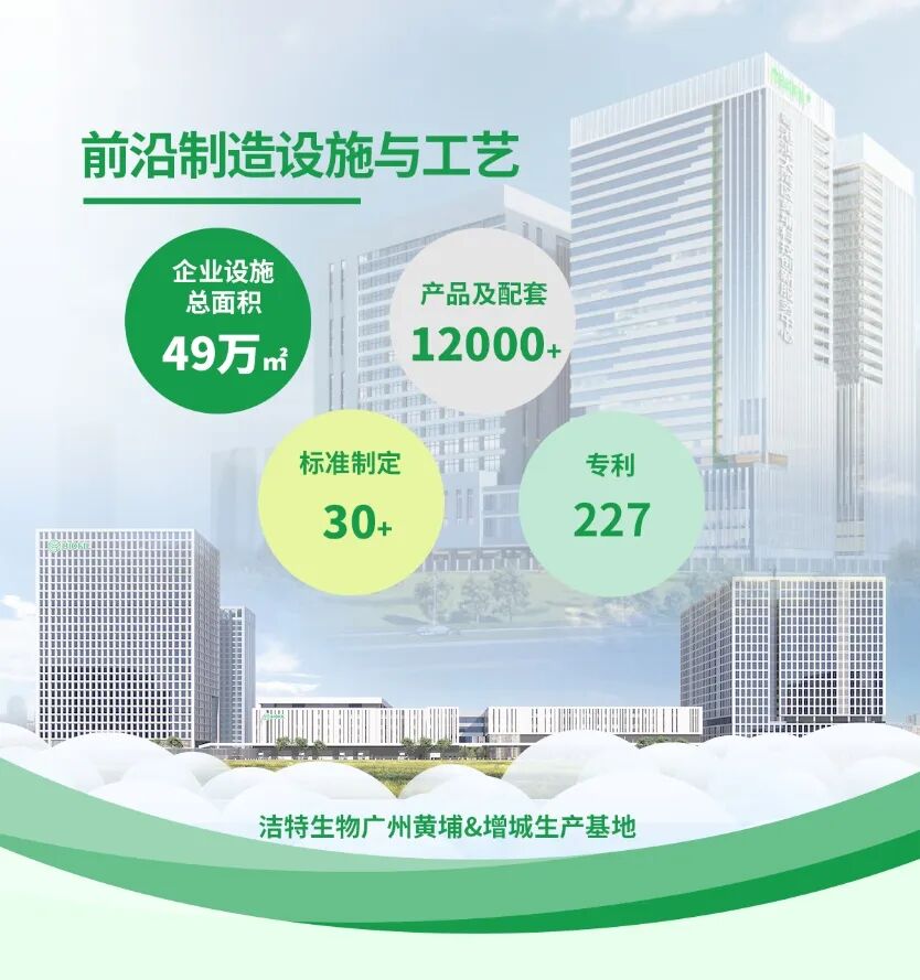 先进的生产设施与生产工艺是践行可持续发展理念与措施的前提条件。20多年来,洁特生物致力于成为提供生物实验室整体解决方案的高新技术企业,始终聚焦产业升级。洁特生物总建筑面积达490,000㎡,包括黄埔生产基地160,000㎡,增城生产基地330,000㎡。建设有65,000㎡十万级GMP洁净生产车间,40,000m2智能制造车间,配备国际高端自动化生产设备、引进MES数字化生产管理系统,着力打造的行业顶尖的智能制造及仓储一体化“关灯工厂”。