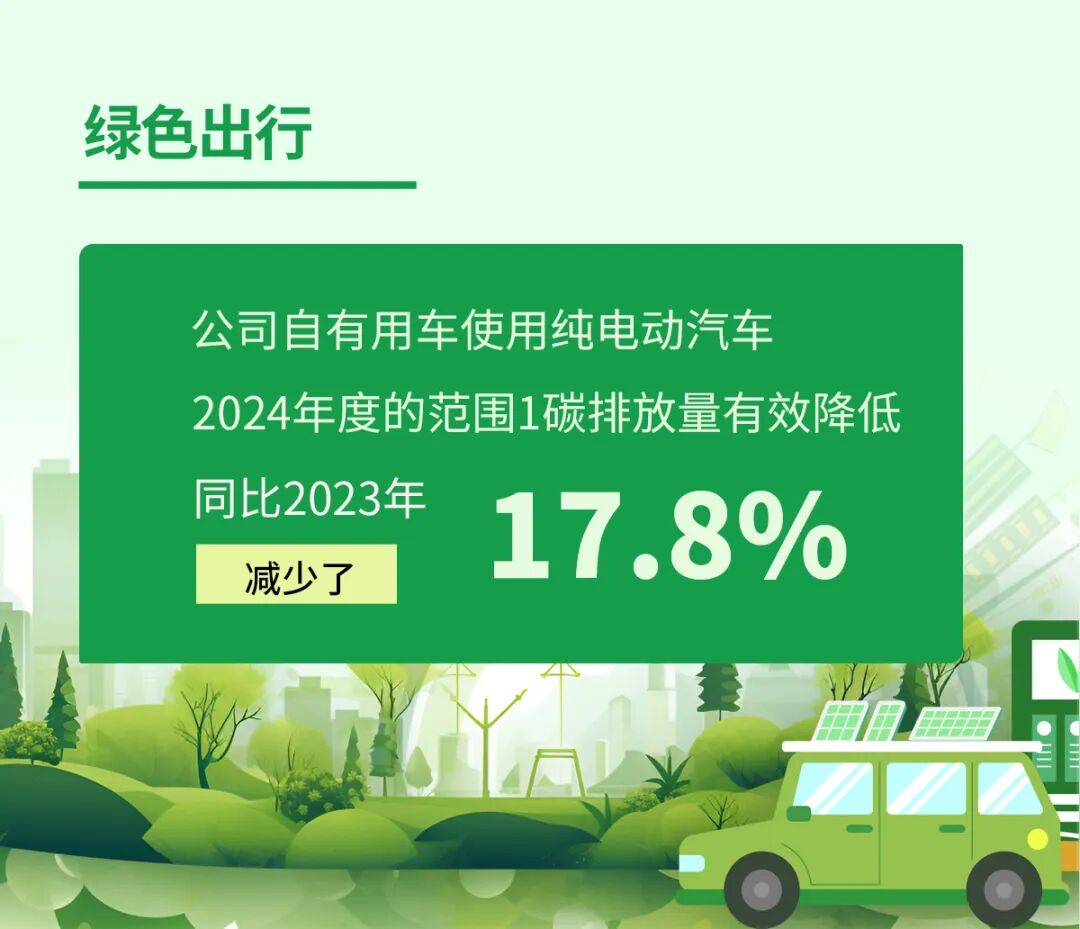 为持续降低范围1碳排放量,洁特生物大力推行绿色交通方式,将自有用车几乎全面更换为纯电动汽车,并且在车辆调度和能源管理方面进行持续优化。2024年,公司范围1碳排放量降至60.15吨,较2023年显著降低17.8%。
