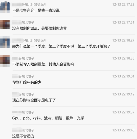 12月13日深夜,东北证券电子组和计算机组在大群里撕起来了,且这则消息被有心人放在了网上。