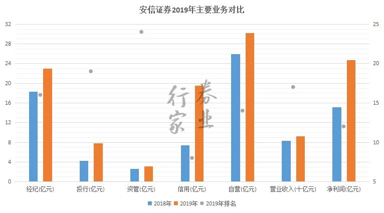 饶是如此,国信证券在主要业绩指标依然全面领先安信证券,仅有资管业务和信用业务稍逊。