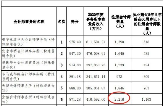 按照最新的数据,我国目前注册会计师数量最多的事务所立信,拥有注册会计师2216名,还要比瑞华巅峰时期少300人。