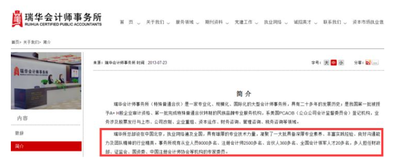 2018年的时候,如果点开瑞华的官网,在官网的首页,瑞华会自豪地写道:现有从业人员9000多名、注册会计师2500多名、合伙人360多名、全国会计领军人才20多名。