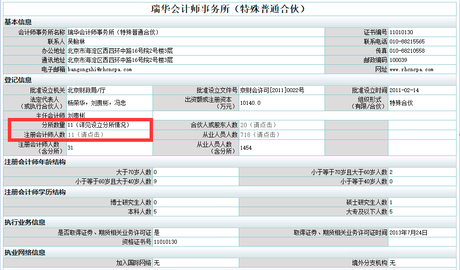 截止目前,根据中注协行业信息系统显示,瑞华会计师事务所仅有11名注册会计师!