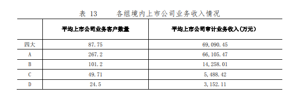 按照中注协的数据,2020年四大服务的上市公司平均为87.75家,这项指标上瑞华足足是四大的2倍有余,即使是上市公司客户最多的A组,平均数量为267.2家,依然不敌瑞华。