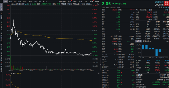 在前两日连续拉出涨停板后,4月18日,泛海控股股价一路下挫,一度触及跌停。当日以2.05元/股报收,跌幅9.29%。