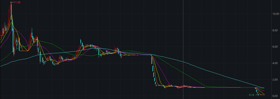 凯迪生态2015-2020年退市的股价走势(Wind,前复权)