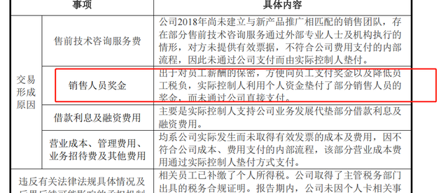 而在对该行为的解释中,也是漏洞百出:其称,出于对员工薪酬的保密,方便向员工支付奖金以及降低员工税负,实际控制人利用个人资金垫付了部分销售人员的奖金,而未通过公司直接支付。