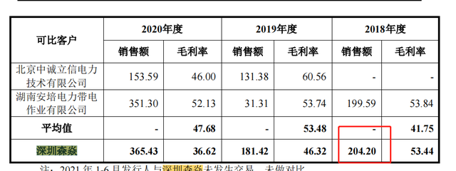 然而,通过其招股书披露的内容可以发现,里得电科与深圳森焱得关系似乎并不紧密,在2018年仅仅204.2万元的销售金额似乎很难说明双方合作关系的密切,毕竟其自己在招股说明书中说了,报告期内,深圳森焱销售金额占发行人营业收入的比重分别为0.75%、0.56%、0.91%和 0.00%,占比较低。