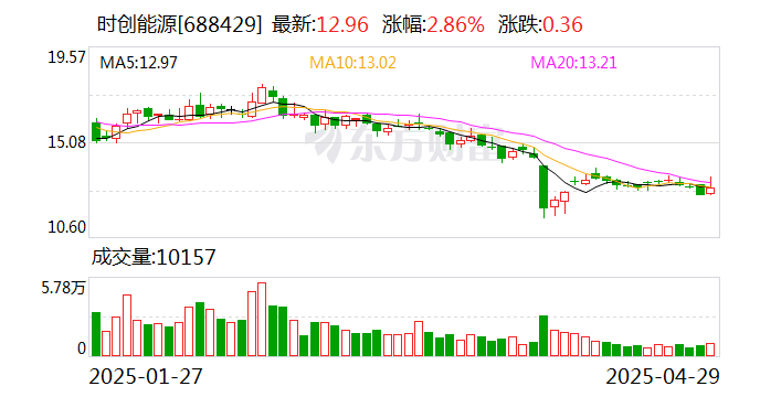 4月28日,时创能源(688429)公布2025年一季报,公司营业收入为1.81亿元,同比上升25.7%;归母净利润自去年同期亏损5845万元变为亏损1.64亿元,亏损额进一步扩大;扣非归母净利润自去年同期亏损6518万元变为亏损1.82亿元,亏损额进一步扩大;经营现金流净额为-6576万元,同比增长73.1%;EPS(全面摊薄)为-0.4104元。
