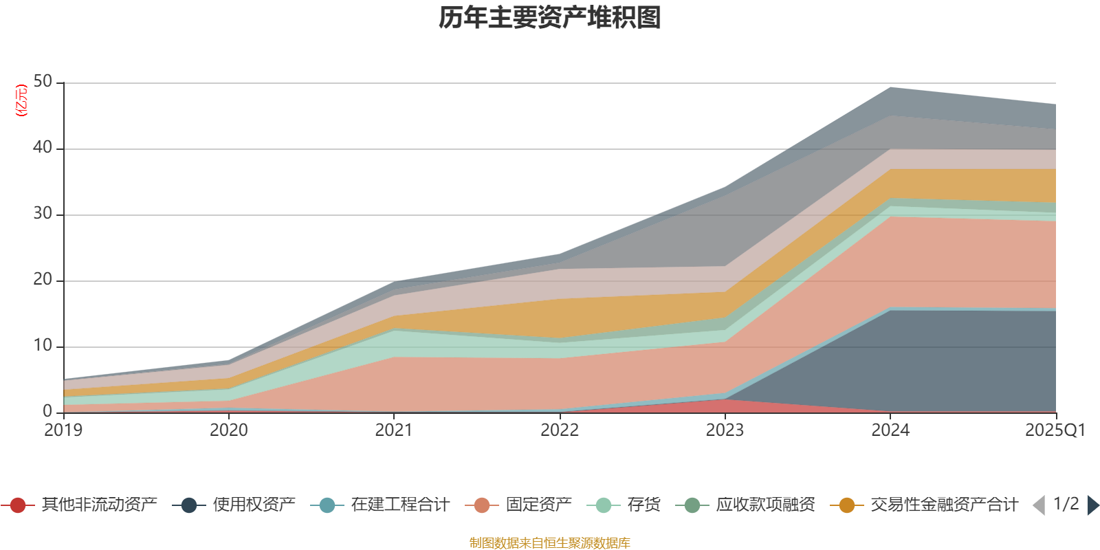 资产重大变化方面,截至2025年一季度末,公司货币资金较上年末减少38.69%,占公司总资产比重下降3.61个百分点;交易性金融资产合计较上年末增加16.92%,占公司总资产比重上升2.08个百分点;使用权资产较上年末减少0.77%,占公司总资产比重上升1.48个百分点;递延所得税资产较上年末减少32.2%,占公司总资产比重下降0.87个百分点。