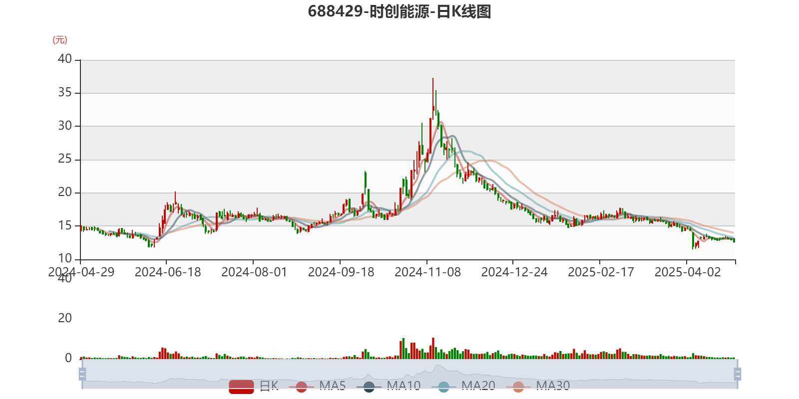 以4月28日收盘价计算,时创能源目前市盈率(TTM)约为-6.68倍,市净率(LF)约3.29倍,市销率(TTM)约6.74倍。
