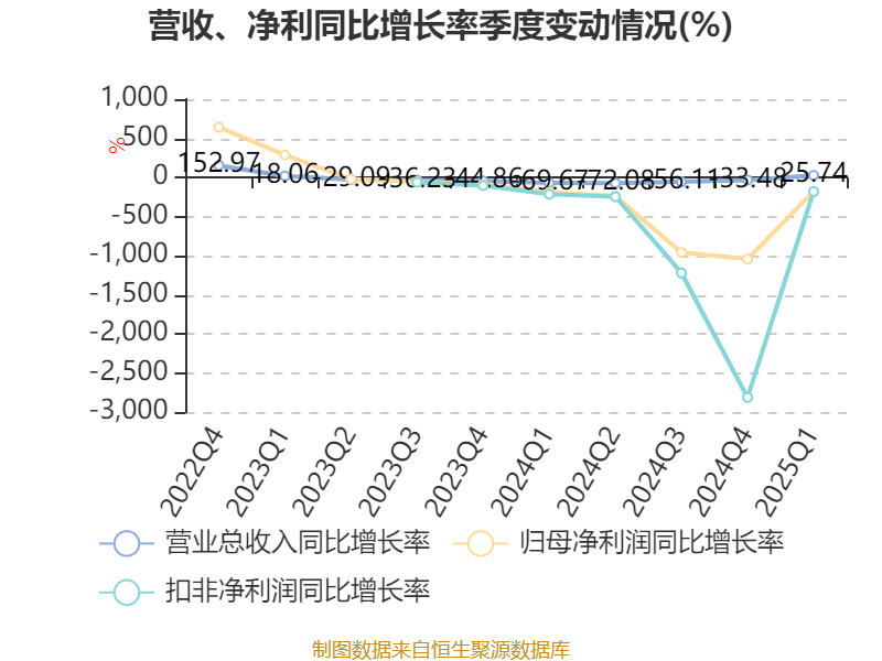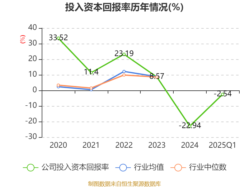 盈利能力方面, 2025年一季度公司加权平均净资产收益率为-10.22%,同比下降7.67个百分点。公司2025年第一季度投入资本回报率为-2.54%,较上年同期下降0.12个百分点。
